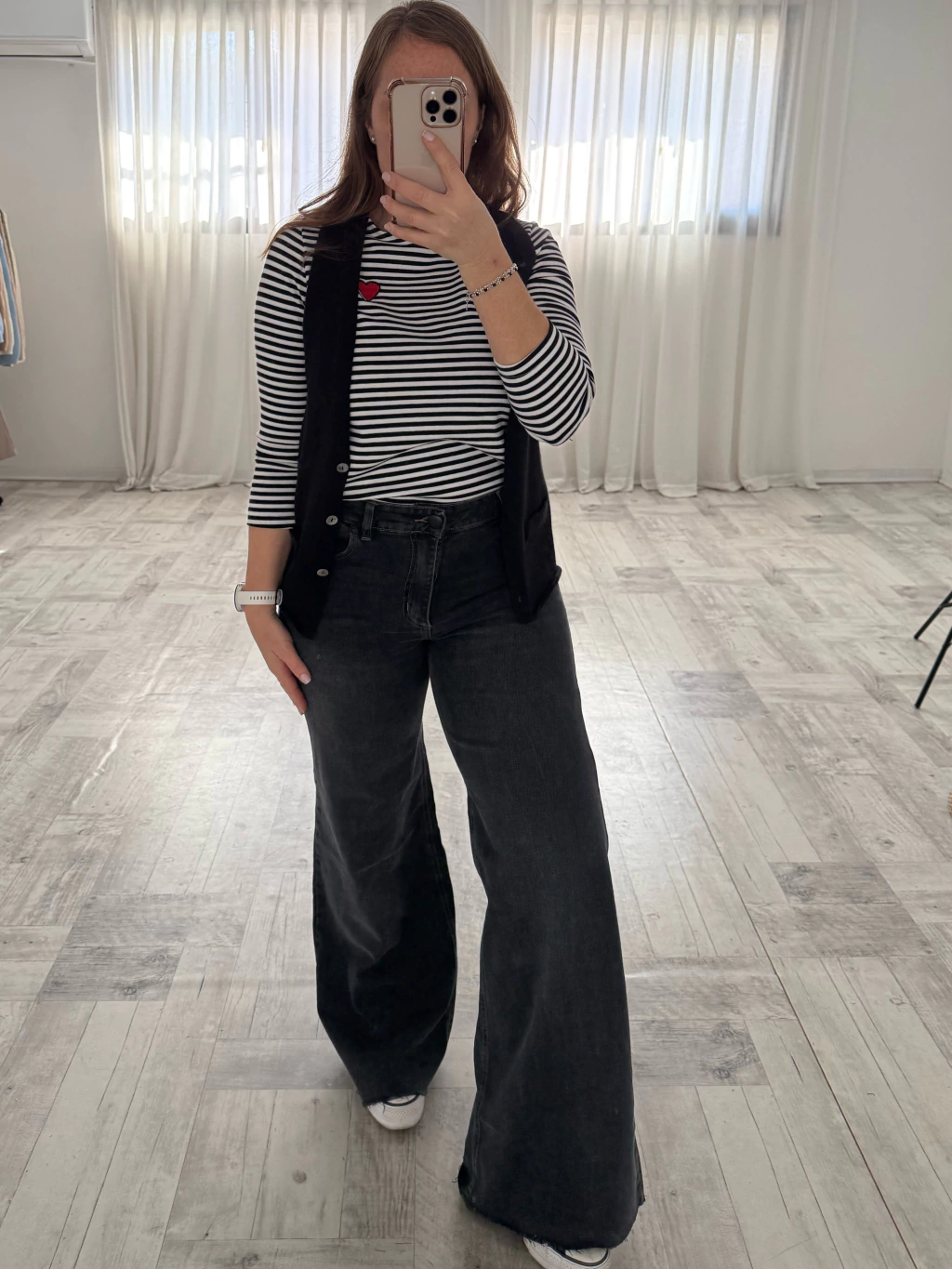 ✨Chaleco liviano tejido, con escote en V y botones delanteros. Posee bolsillos decorativos y calce recto, ideal para superponer o usar solo.