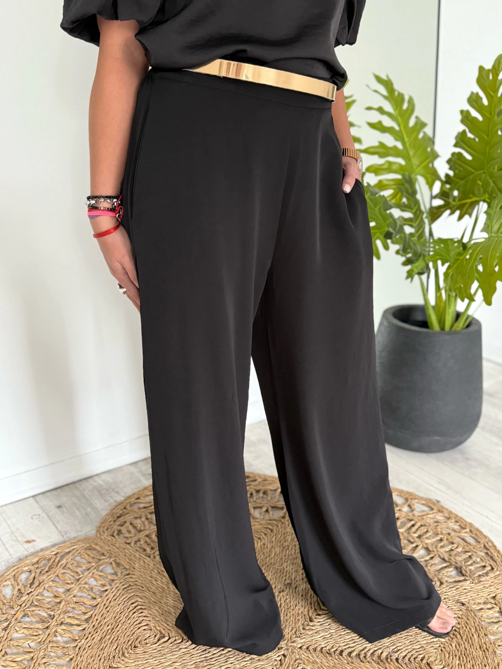 Confeccionado en crep sastrero de excelente caída, el Palazo Dafne se adapta a tu estilo gracias a su media cintura con elástico, brindando un calce cómodo y favorecedor.