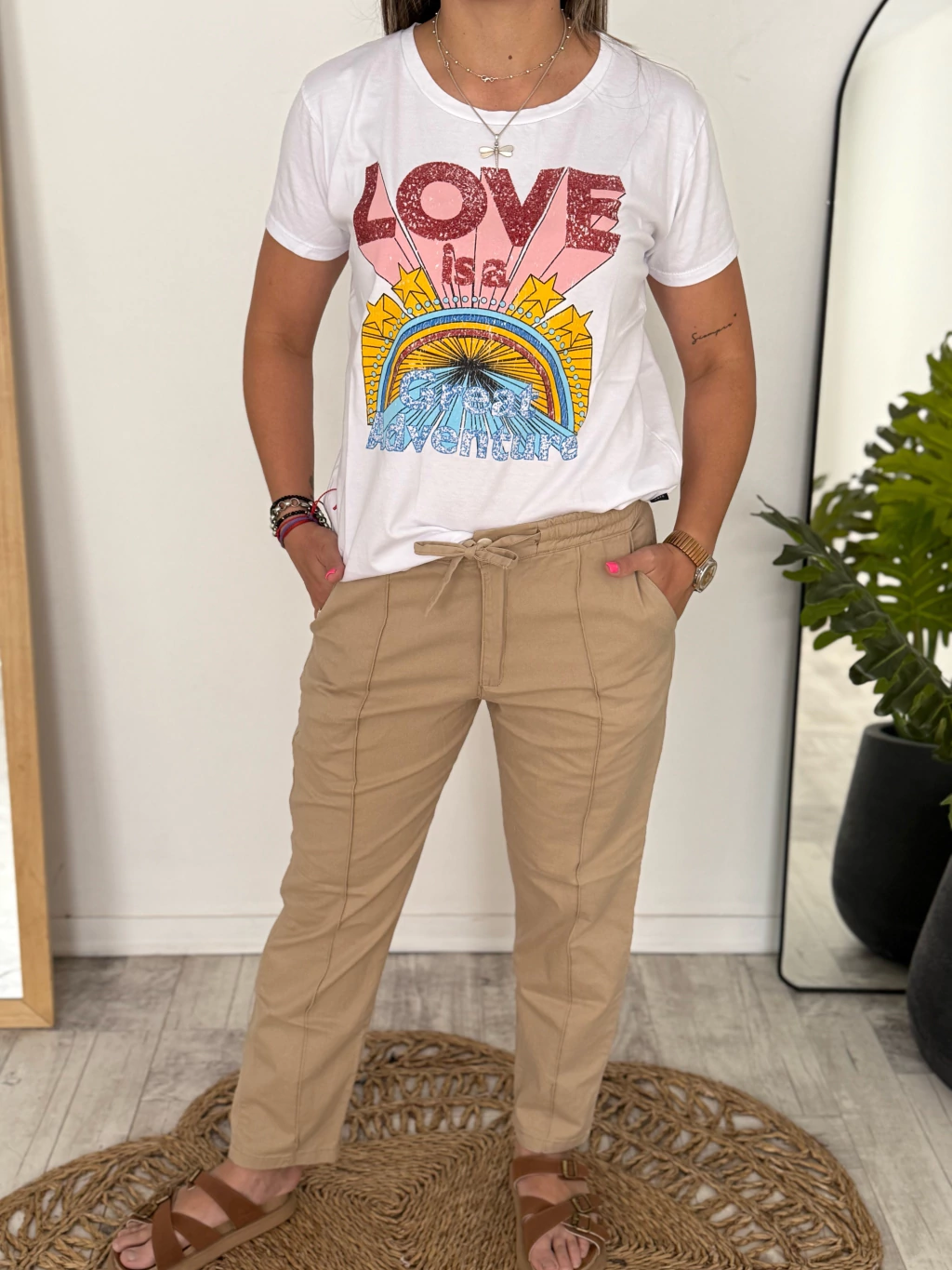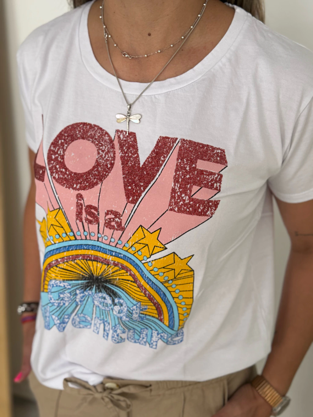 ✨Sumá color y buena vibra a tu look con esta remera de manga corta. Confeccionada en algodón suave, súper cómoda y fácil de combinar. Su estampa retro con glitter hace que destaque y le dé un toque único a cualquier outfit.