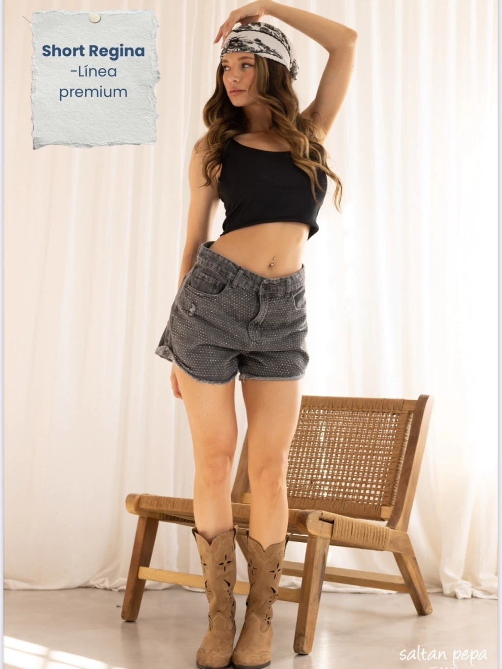 SHORT REGINIA LINEA PREMIUM es la prenda que combina elegancia y sofisticación en cada detalle. Confeccionado con materiales de alta calidad y un acabado premium, este short se destaca por sus delicados strass que aportan un brillo sutil y refinado, ideal para quienes buscan un estilo distinguido sin perder comodidad.