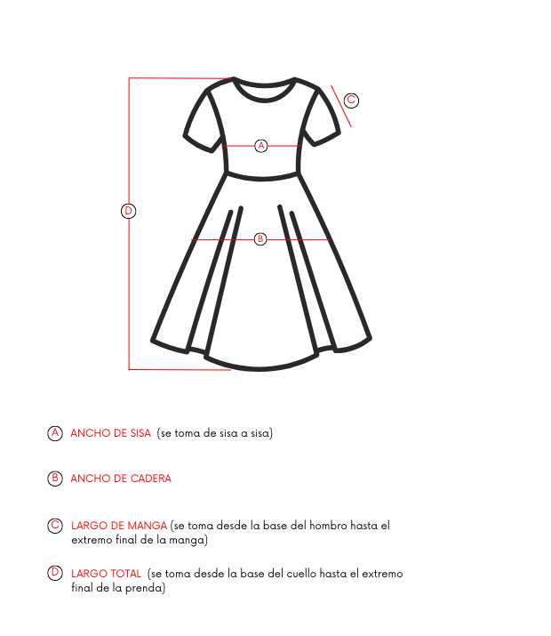 MEDIDAS: las medidas son aproximadas y corresponden a la prenda estirada en una superficie plana.